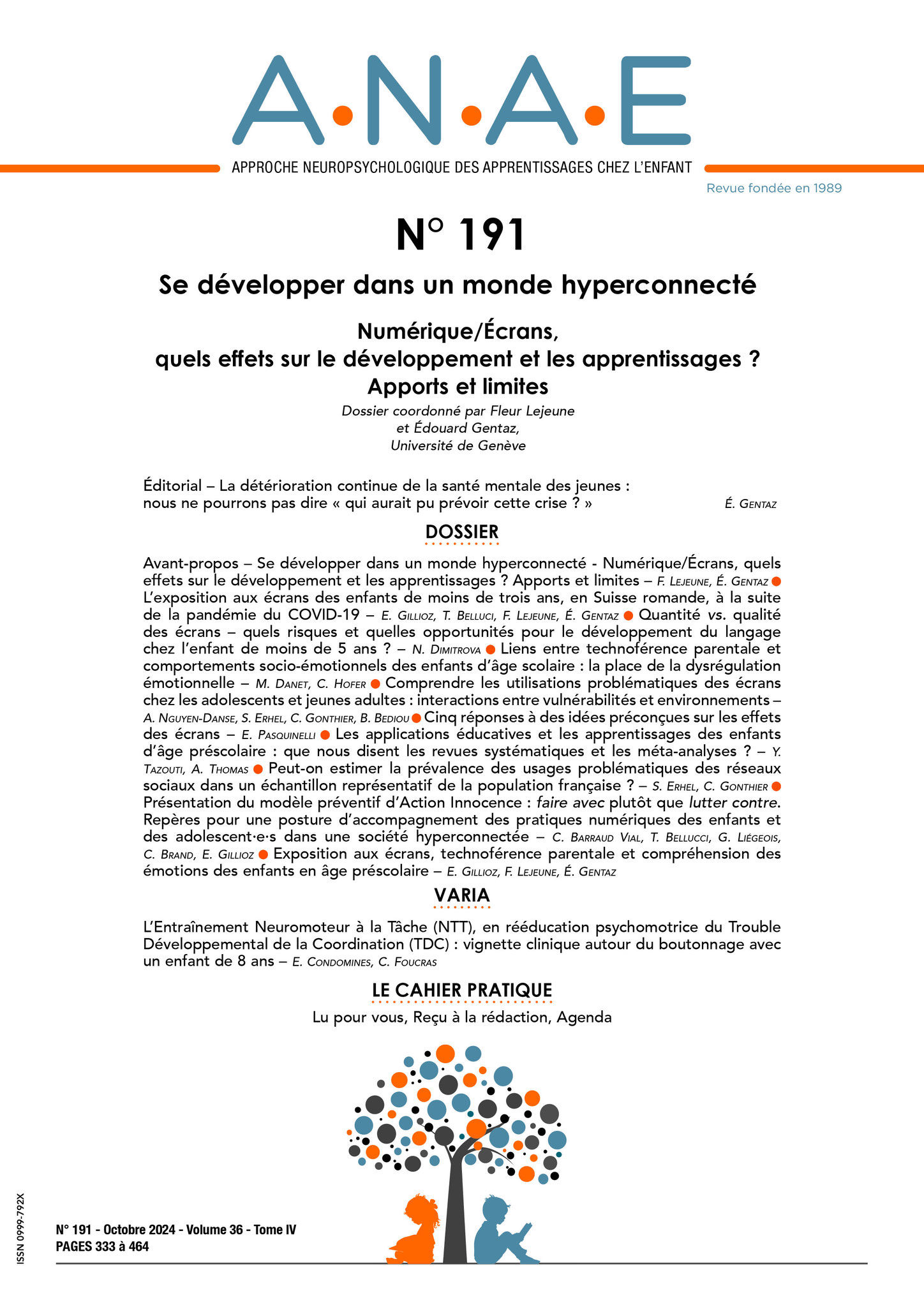 A.N.A.E. N° 198 – Développement des compétences psychosociales et émotionnelles/Troubles du comportement/ opposition. Dossier coordonné par Sylvie Richard et Édouard Gentaz, Université de Genève