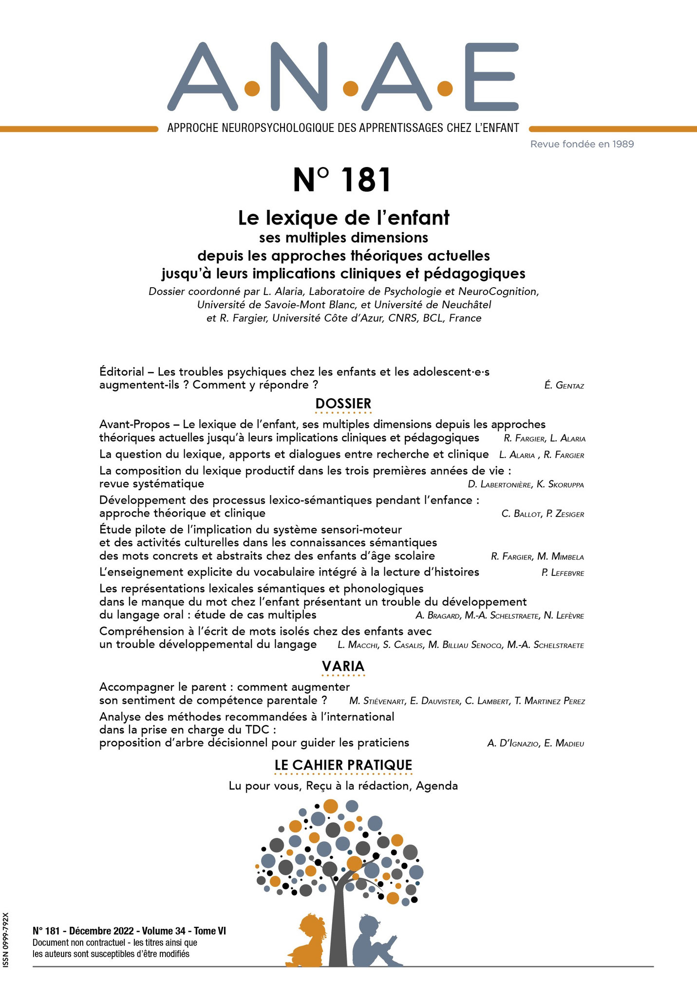 A.N.A.E. N° 197 – Les troubles DYS au sein des troubles neurodéveloppementaux : des recherches scientifiques aux pratiques pédagogiques et thérapeutiques.