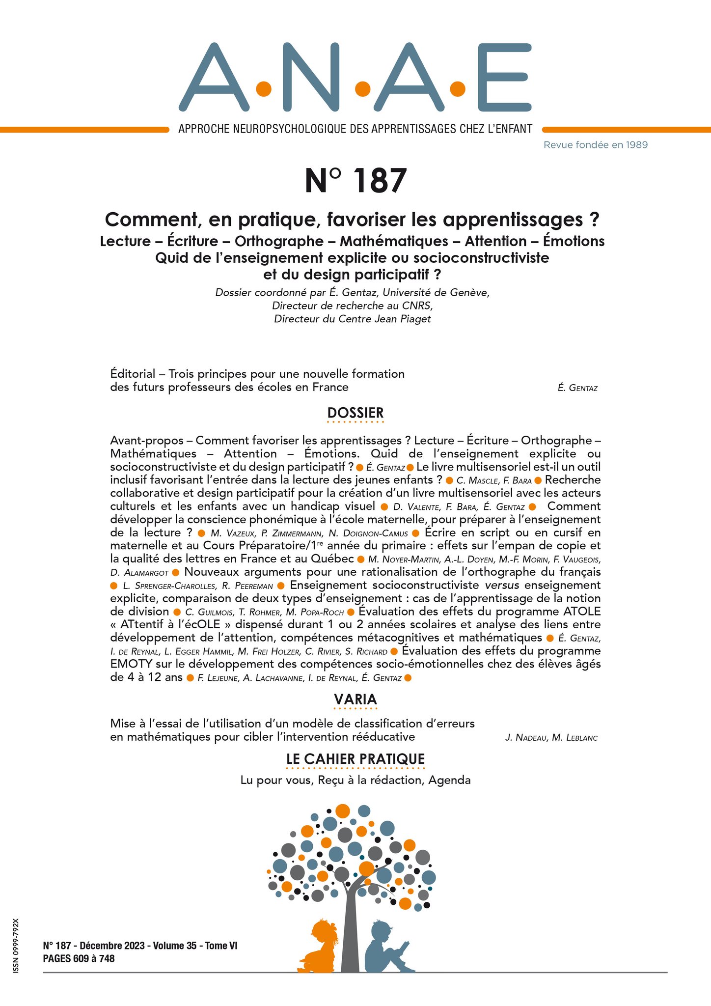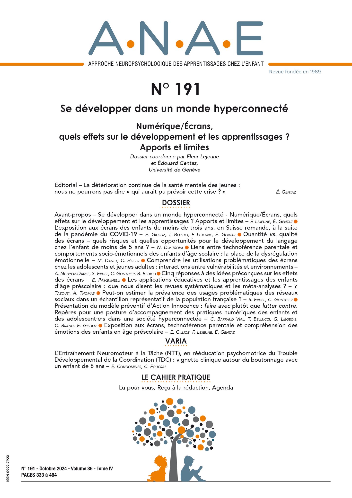 A.N.A.E. N° 198 – Développement des compétences psychosociales et émotionnelles/Troubles du comportement/ opposition. Dossier coordonné par Sylvie Richard et Édouard Gentaz, Université de Genève