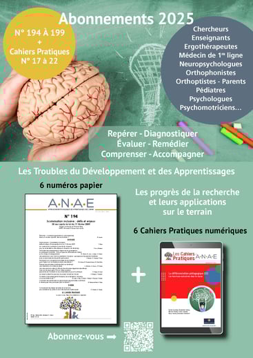 A.N.A.E. N° 197 – Les troubles DYS au sein des troubles neurodéveloppementaux : des recherches scientifiques aux pratiques pédagogiques et thérapeutiques.